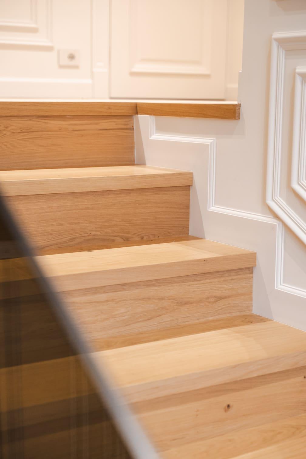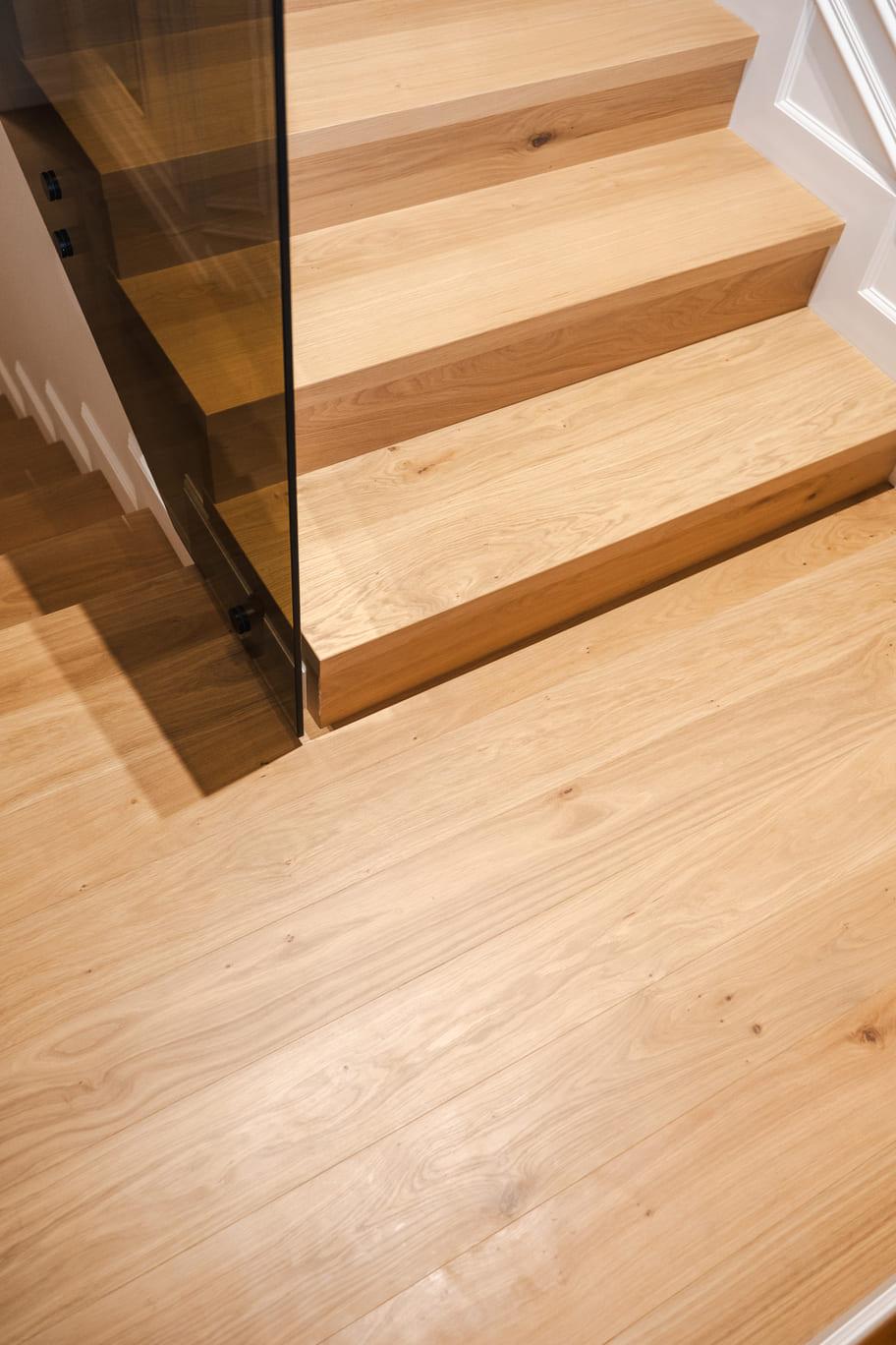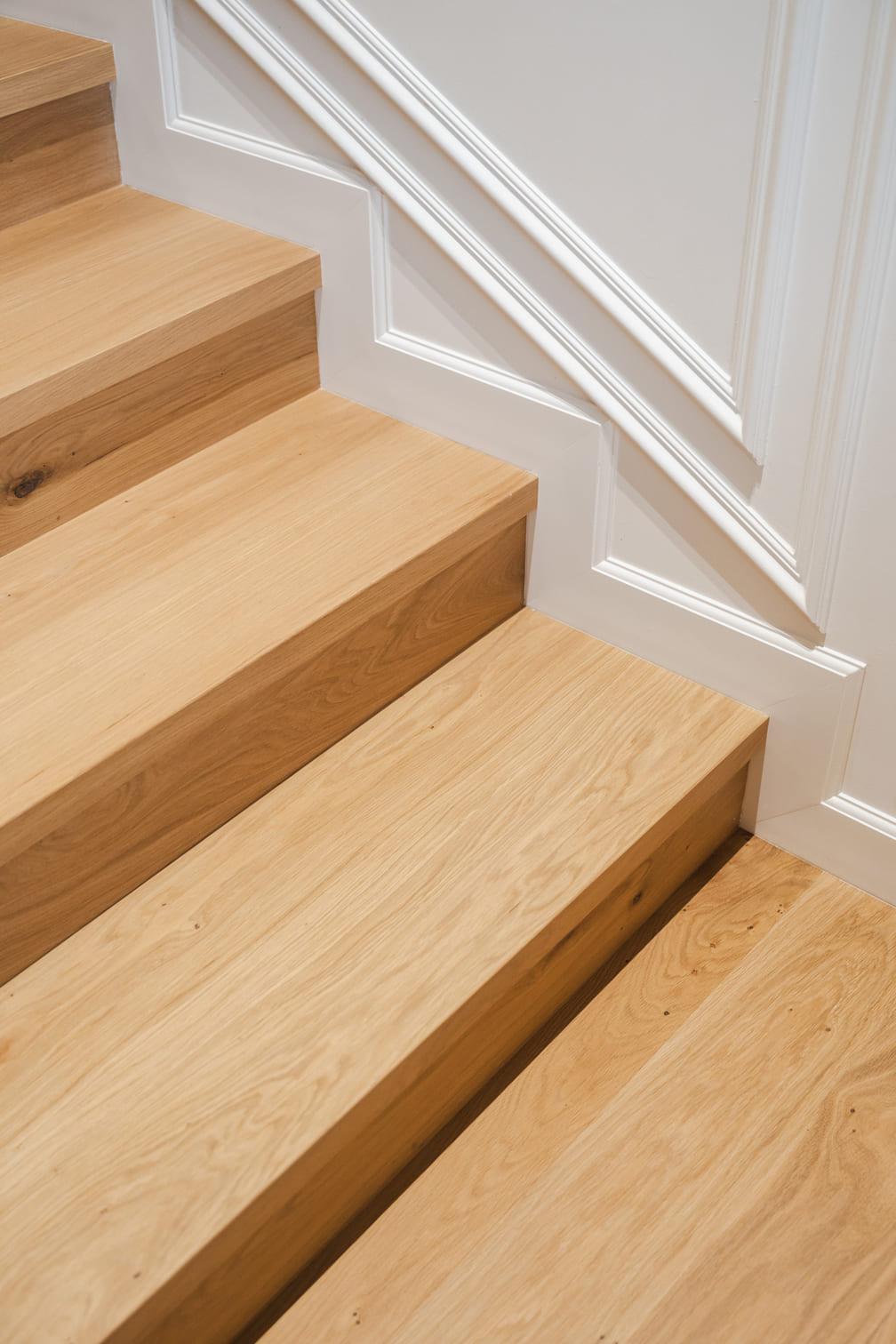Parchet pentru scări Plăcile de parchet pentru placarea scărilor de interior sunt confecționate din lemn de din stejar, frasin sau nuc. Parchetul este dublu stratificat și acoperit cu ulei natural. Sunt disponibile în toate culorile, formatele și finisajele din gama noastră și au excelentă rezistență la trafic intens.