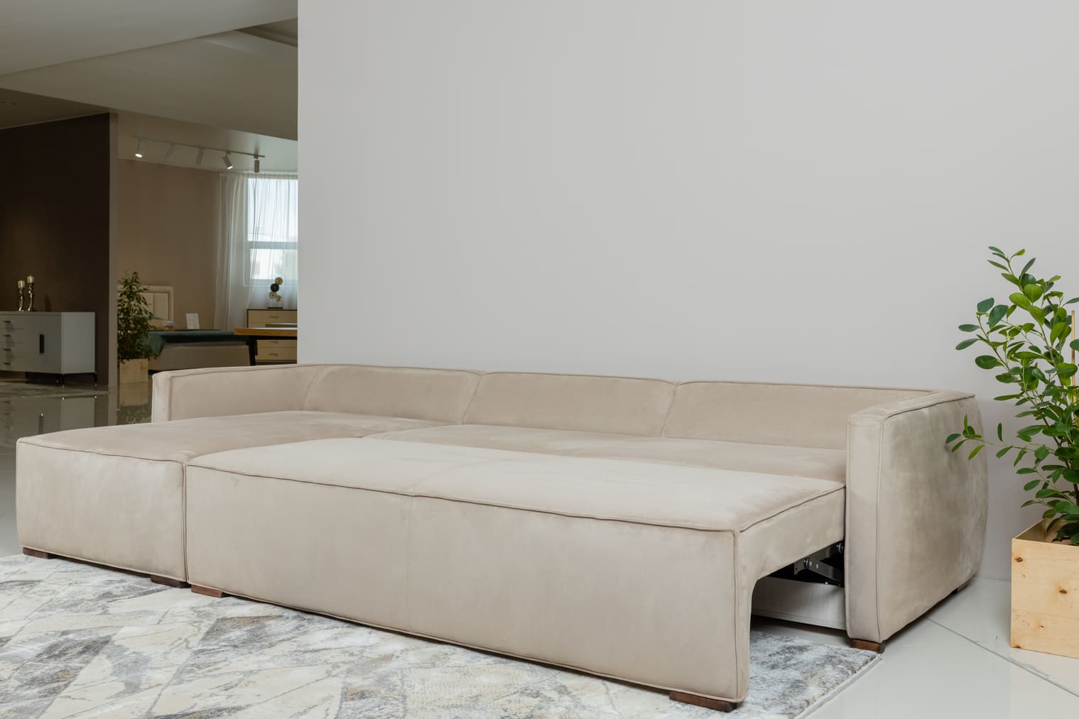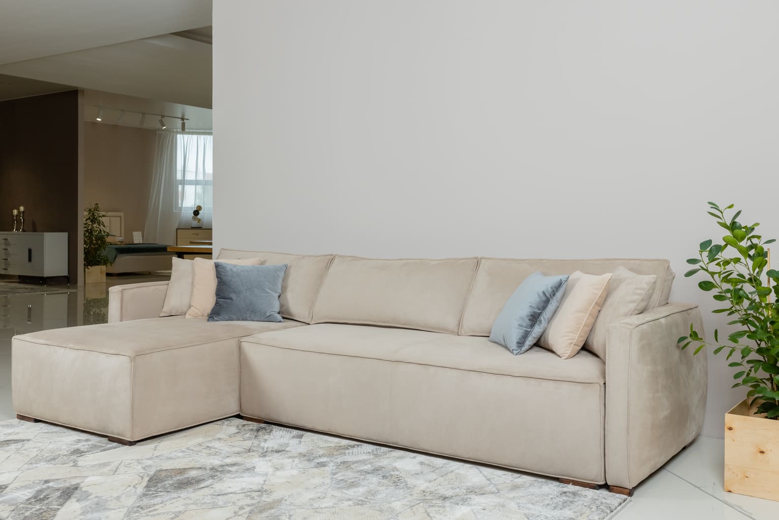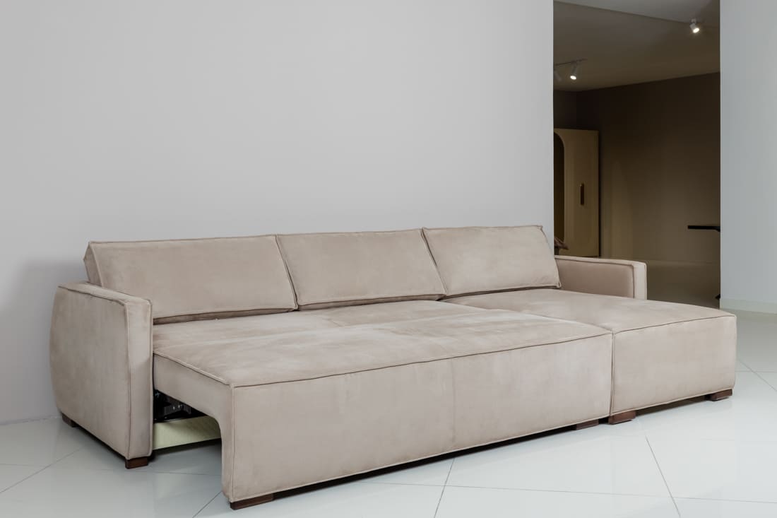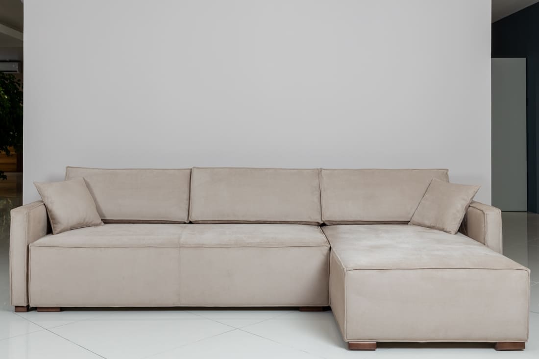 Угловой диван Boston с memory-пеной. Раскладной, удобный, чрезвычайно мягкий, просторный, обит тканью, устойчивой к когтям — идеально подходит для уютной гостиной и большой семьи.