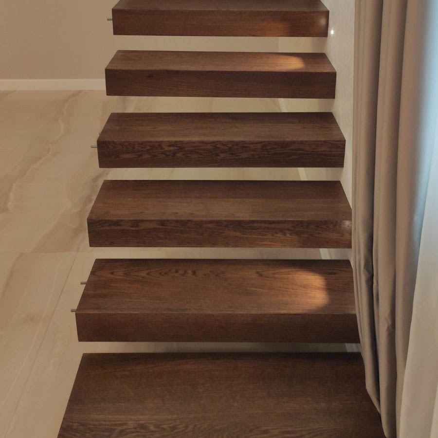 Паркет для лестниц Паркетные доски для внутренних лестниц изготавливаются из древесины дуба, ясеня или ореха. Паркет двухслойный и покрыт натуральным маслом. Он доступны во всех цветах, размерах и отделках из нашего ассортимента и обладают отличной устойчивостью к интенсивному движению.