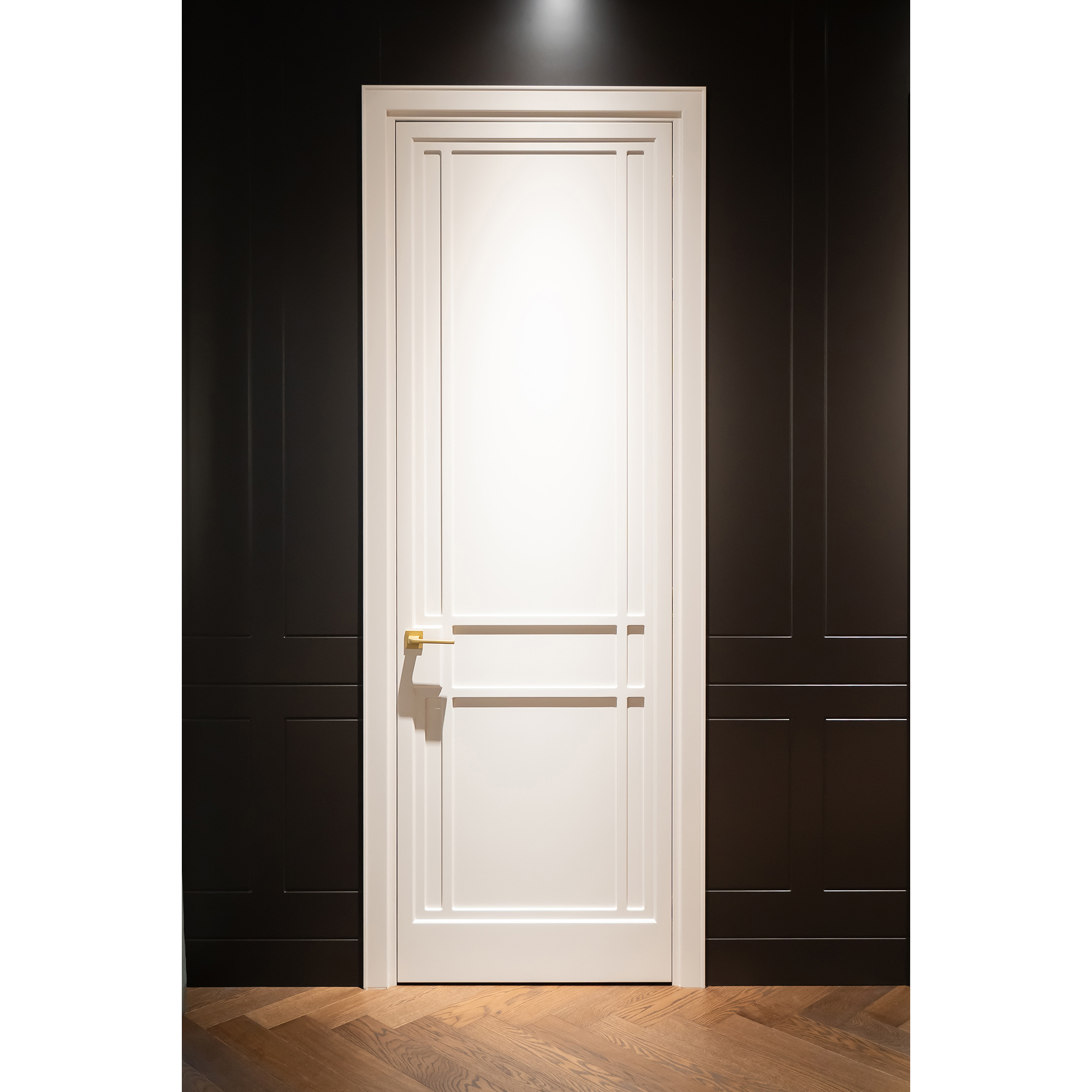 Геометрию можно переосмыслить иначе, чем через формулы из учебника. Например, в завораживающей модели COUTURE. Игра вертикальных и горизонтальных линий на фоне окрашенного полотна — настоящая минималистичная находка. Именно декоративная планка придаёт этой двери особое очарование.